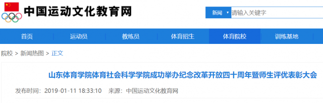 2018年1月8日,为纪念改革开放四十周年,激励先进,树立典型,推动工作,山东体育学院体育社会科学学院在一号教学楼二楼报告厅隆重举办了纪念改革开放四十年暨师生评优表彰大会。副校长张艳霞参加了此次活动。