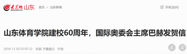 国际奥委会主席巴赫发来贺信,巴赫在贺信中代表国际奥林匹克委员会,向山体全体师生员工致以最热烈的祝贺和深深的祝福。他指出,长期以来,山东体育学院在奥林匹克运动发展中发挥了重要作用,培养了一大批优秀远动员、教练员,也为中国体育强国建设做出了重要贡献。他相信,北京即将举办2022年冬奥会,这是世界上第一个奥运会大满贯城市,希望山体继续为冬奥加油,为中国体育发展做出更大的贡献。