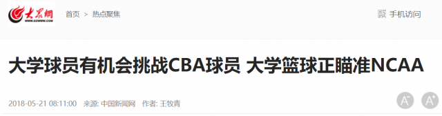 承认差距不小,但致力于中国校园体育的从业者一直在尝试着追赶。今年,第三届全国体育院校篮球联赛(简称SCBA联赛)将扩军至36支球队,赛事也被纳入了中国篮协年度赛事计划。赛事运营方向记者表态,希望通过一届届赛事的提升,最终打造属于中国的NCAA。
