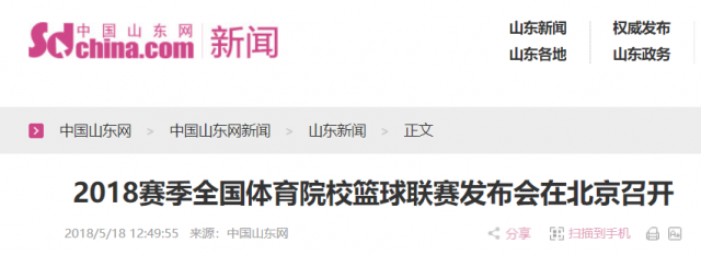 【中国山东网】2018赛季全国体育院校篮球联赛发布会在北京召开