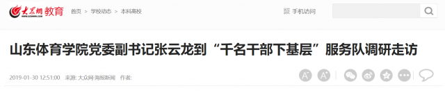 大众网·海报新闻讯1月24日,山东体育学院党委副书记张云龙到菏泽成武和巨野“千名干部下基层”服务队调研,看望山东体育学院挂职人员和当地困难户。山东体育学院党委组织部部长谭文清、体育传媒与信息技术学院党总支副书记宁翠叶等陪同。