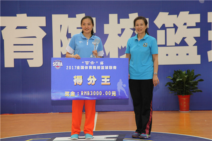 夏春宣布比赛成绩,以及获得体育道德风尚奖的单位和包括得分王、篮板王在内的个人奖项。沈阳体育学院、南京体育学院、成都体育学院获得体育道德风尚奖,沈阳体育学院吴爽获得得分王称号,山东体育学院王雨薇获得篮板王称号,山东体育学院王思雨获得抢断王和助攻王称号,山东体育学院房玲玲获得三分王称号,广州体育学院崔洪扬获得最有价值球员MVP称号。单兆升为获得体育道德风尚奖的单位颁奖,杨磊为“优秀志愿者”颁发证书,田敏、周孟详、张晓东分别为获得“得分王、篮板王、抢断王、助攻王、三分王”称号的运动员颁奖,原维佳为获得MVP称号的运动员颁奖,李园春、侯冰为获得第三名的运动队颁奖,罗立、李国澄为亚军上海体育学院代表队颁奖。最后,原维佳、单兆升为获得冠军的广州体育学院代表队颁奖。