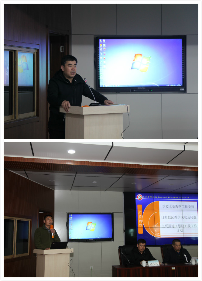 教科训党总支书记、教务处副处长王立平结合日照校区2018-2019学年第二学期教学工作情况,从学校主要教学工作安排、日照校区教学现状及问题、主要措施及工作计划三大方面分别进行了汇报。