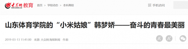 最近,“小米姑娘”、大学生村官韩梦娇心系老百姓、扎实为老百姓办实事的故事传遍开来,老百姓称赞她,青年大学生津津乐道,她的母校山东体育学院师生也为这样优秀的校友感到自豪。