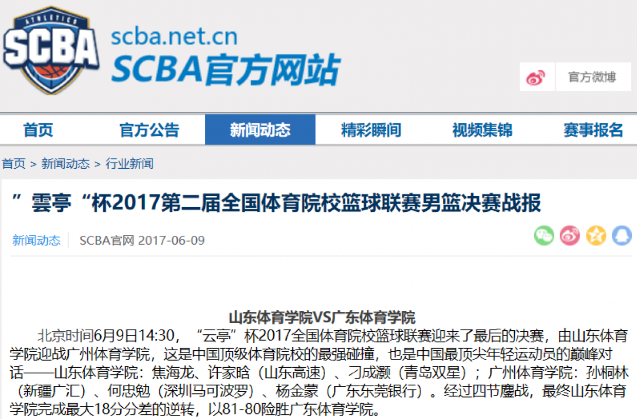 【SCBA官方网站】“雲亭”杯2017第二届全国体育院校篮球联赛总决赛战报