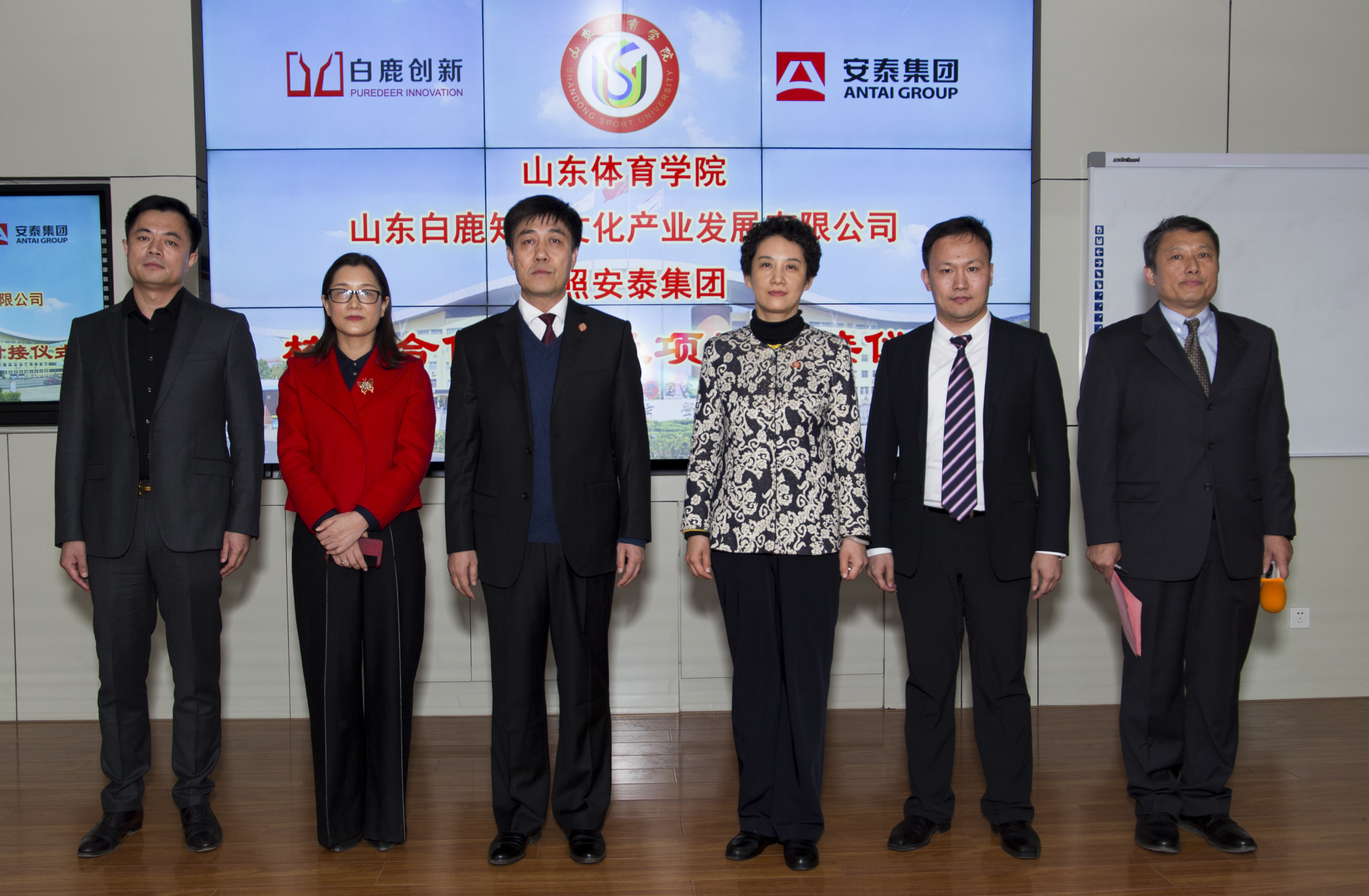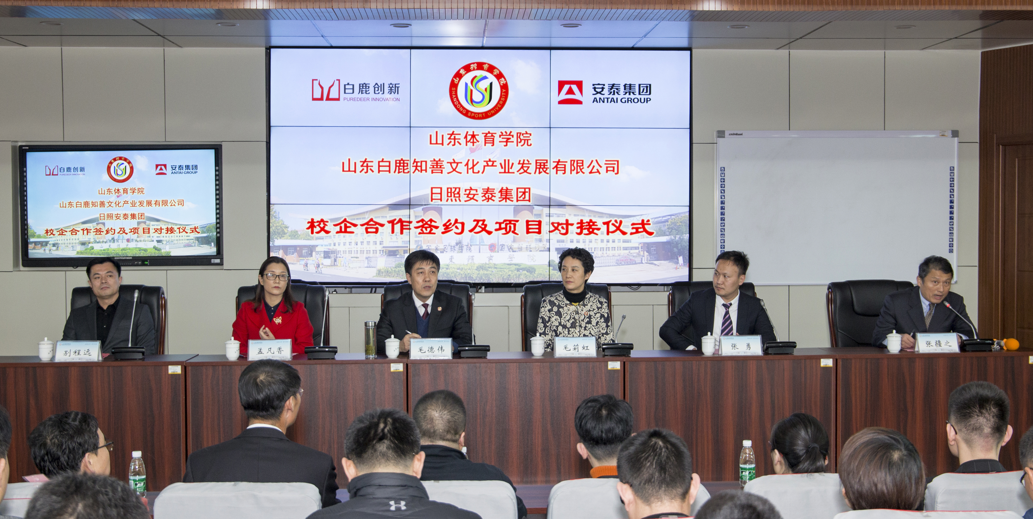 3月14日,为进一步推进校地深度融合、培养创新应用型人才、服务地方产业发展,我校与山东白鹿知善文化产业发展有限公司、日照安泰集团在日照校区培训楼五楼报告厅举行校企合作签约及项目对接仪式。院长毛德伟,副院长、日照校区管委会主任毛莉虹,日照市委副秘书长、体育局局长孟凡香,山东白鹿知善文化产业发展有限公司执行董事、总经理张勇,日照安泰集团董事长等出席活动。