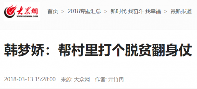 在中共中央组织部贫困村大学生村官培训班上,韩梦娇代表山东省大学生村官作典型发言。虽是即兴演讲,但她系统分析了东王庄村的贫困现状、贫困原因和脱贫对策,她说:“我认为东王庄的贫困原因,一是产业结构单一,二是基础设施落后,三是村民思想保守。想要脱贫,第一要抓党建;第二要吃透三农政策,拿出一套本村适用的扶贫开发可行性方案;第三要使产业向品牌化转变,形成产业链;最重要的是,要激发村民内生动力,实现农超对接……”一番慷慨陈词,在场大学生村官们无不点赞。