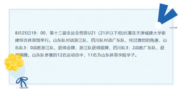 最终,山东队以3:0的绝对优势战胜浙江队,夺得了第十三届全运会男排U21决赛金牌!这也是山东男排第一次获得全运会金牌,实现了山东男排全运会史上金牌0的突破。