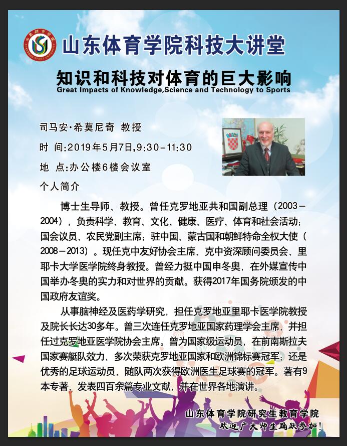 体育科技大讲堂:知识和科技对体育的巨大影响 司马安教授(克罗地亚前副总理)