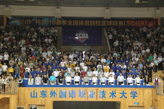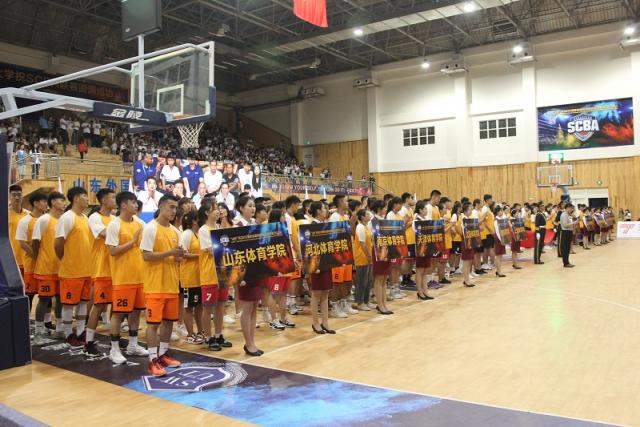 6月22日,“山外”杯2019赛季全国体育院校篮球联赛开赛仪式暨揭幕战在山东外国语职业技术大学篮球馆举行。