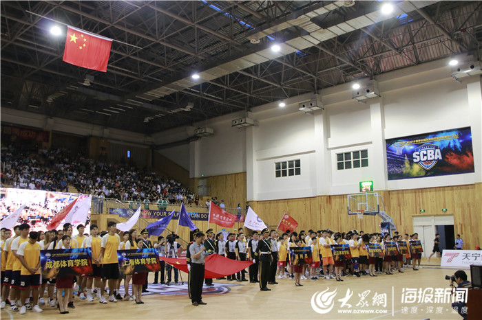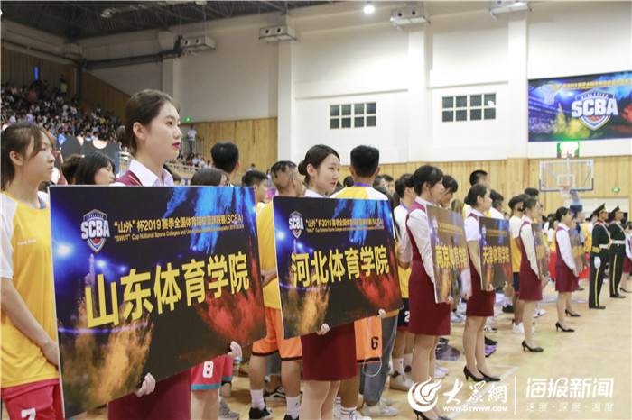 大众网·海报新闻6月22日讯(记者 聂忆宏)6月22日,“山外”杯2019赛季全国体育院校篮球联赛在山东外国语职业技术大学篮球馆开赛。揭幕战由山东体育学院男队对阵西安体育学院男队,最终山东体育学院以69:56战胜了西安体育学院,取得了开门红。揭幕战前,现场举行了本次比赛的开幕式。