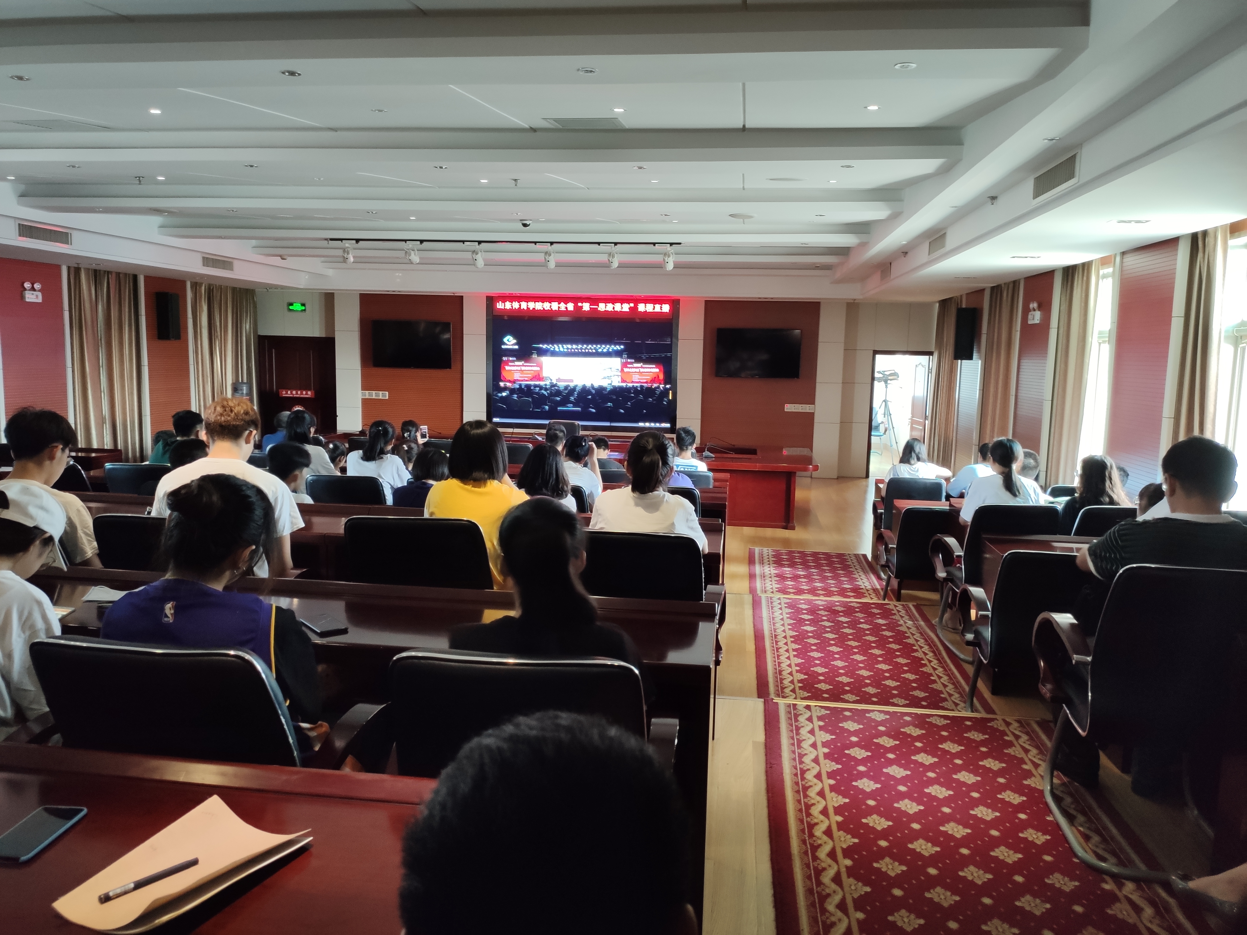 为深入贯彻习近平总书记重要回信精神,努力造就理想信念坚定、专业知识扎实、具有创新创业能力、德才兼备的有为人才,在更大范围、更高层次、更深程度开展“青年红色筑梦之旅”活动,推动创新创业教育与思想政治教育相融合,省教育厅打造了全省“第一思政课堂”。6月18日下午,我校响应教育厅号召,于济南、日照两校区同时组织马克思主义学院全体教师、学生辅导员和学生代表共200余人观看“第一思政课堂”课程直播。其他时间、其他师生以分散自主收看的方式收看直播。