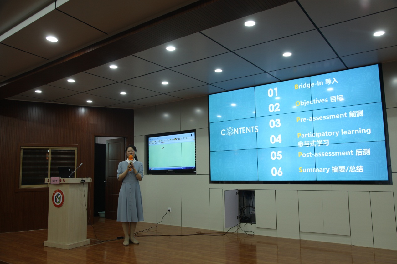 第二板块为专家示范课展示和教学方法运用与分析讲座。研讨会邀请到2018年山东省青年教师教学竞赛一等奖、烟台大学音乐舞蹈学院张景晖副教授。她现场按照青赛流程向参会着展示了《西方音乐史与名作赏析》示范课,示范课后,运用BOPPPS教学设计方法结合实例解析了导言、目标设定、前测、参与式学习、后测、总结等六个有效教学环节。