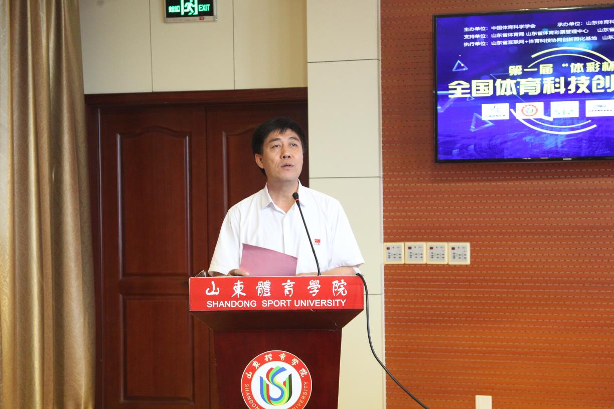毛德伟代表山东体育学院对各位嘉宾和朋友们的到来表示热烈的欢迎,向长期以来大家对学校的关心和支持表示衷心的感谢。他强调,体育承载着国家强盛、民族振兴的梦想。实施创新驱动发展是国家重大战略,圆满完成“广泛开展全民健身活动,加快推进体育强国建设,筹办好北京冬奥会、冬残奥会”三大历史任务,必须依靠强大的体育科技实力和创新。在中国体育科学学会的坚强领导和科学指导下,以体育科技创新大赛为载体,不仅可以有效集合各类体育科技创新资源,打造一个体育科技创新品牌赛事,建设一个体育科技成果交流展示平台,更有助于打通一条实现产学研一体化、加速体育科技成果转化的通道,培育出一批世界领先、中国标准、自主产权的体育科技创新项目,创建出一种依托体育专业院校、引领体育科技创新发展的崭新模式,使中国体育真正意义上驶入创新驱动发展的快车道,为实现中华民族伟大复兴中国梦作出新贡献。山东体育学院作为山东省唯一的体育高等学府,多年来,学校坚持体育本体特色,形成了较强的专业、人才和科研等优势。特别是近年来,学校坚持“对接需求、协同创新、集聚特色”的发展理念,实施人才供给侧改革,建设了全国唯一省部共建的国家篮球学院、国家足球学院,以及国家体育总局科学健身示范区、全国幼儿体育发展研究中心、山东省科学健身指导中心等40多个体育科技创新和人才培养平台,其中,学校建有山东省唯一的体育器材研究所,已自主研发了多项国际先进、国内领先的体育训练、康复仪器设备,在体育科技创新方面做出了一些成绩和探索。这些都为我们承办全国体育科技创新大赛打下了坚实基础。他表示,一定高质量、高标准、高效率完成好各项筹办任务,努力把大赛办成新时代展示体育科技创新成果、助力体育强国建设的重要平台和全国性重大体育科技创新赛事。