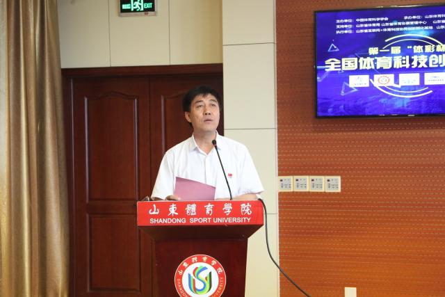 毛德伟在致辞中强调,体育承载着国家强盛、民族振兴的梦想。实施创新驱动发展是国家重大战略,圆满完成“广泛开展全民健身活动,加快推进体育强国建设,筹办好北京冬奥会、冬残奥会”三大历史任务,必须依靠强大的体育科技实力和创新能力。在中国体育科学学会的坚强领导和科学指导下,以体育科技创新大赛为载体,不仅可以有效集合各类体育科技创新资源,打造一个体育科技创新品牌赛事,建设一个体育科技成果交流展示平台,更有助于打通一条实现产学研一体化、加速体育科技成果转化的通道,培育出一批世界领先、中国标准、自主产权的体育科技创新项目,创建出一种依托体育专业院校、引领体育科技创新发展的崭新模式,使中国体育真正意义上驶入创新驱动发展的快车道,为实现中华民族伟大复兴中国梦作出新贡献。山东体育学院作为山东省唯一的体育高等学府,多年来,学校坚持体育本体特色,形成了较强的专业、人才和科研等优势。特别是近年来,学校坚持“对接需求、协同创新、集聚特色”的发展理念,实施人才供给侧改革,建设了全国唯一省部共建的国家篮球学院、国家足球学院,以及国家体育总局科学健身示范区、全国幼儿体育发展研究中心、山东省科学健身指导中心等40多个体育科技创新和人才培养平台,其中,学校建有山东省唯一的体育器材研究所,已自主研发了多项国际先进、国内领先的体育训练、康复仪器设备,在体育科技创新方面做出了一些成绩和探索。这些都为我们承办全国体育科技创新大赛打下了坚实基础。他表示,山东体院将上下一心,高质量、高标准、高效率完成好各项筹办任务,努力把大赛办成新时代展示体育科技创新成果、助力体育强国建设的重要平台和全国性重大体育科技创新赛事。