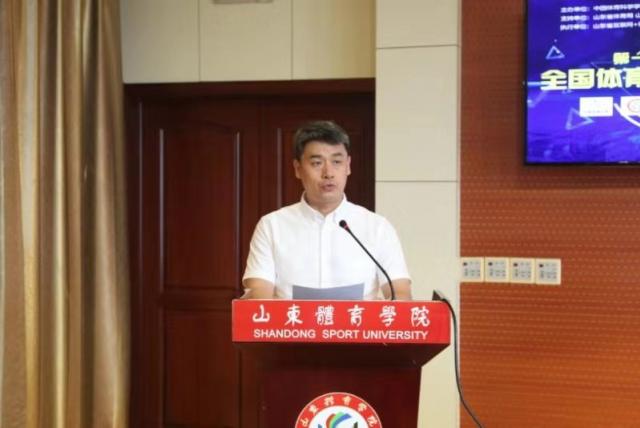 山东省体育局副局长王延奎致辞。山东体育学院院长、大赛组委会执行主任毛德伟致欢迎辞。山东体育学院校领导、大赛组委会执行主任任运河主持发布会。