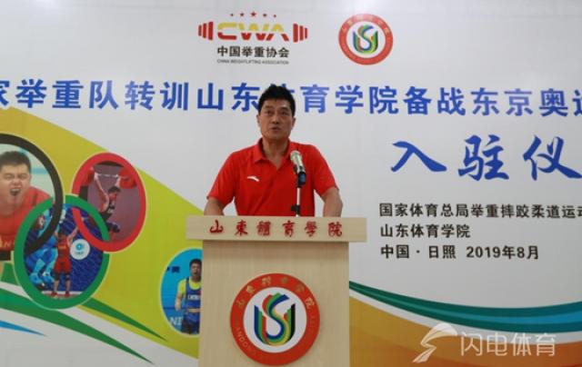 奥运金牌教练员、国家举重队男队主教练于杰代表入驻队伍向山东省体育局、山东体育学院表示感谢,并以诗明志表达转训日照备战东京奥运为赢而战的豪气:“日出东方必先照,壮士临阁只为战。百年屈辱不复还,沙场点兵定凯旋!”