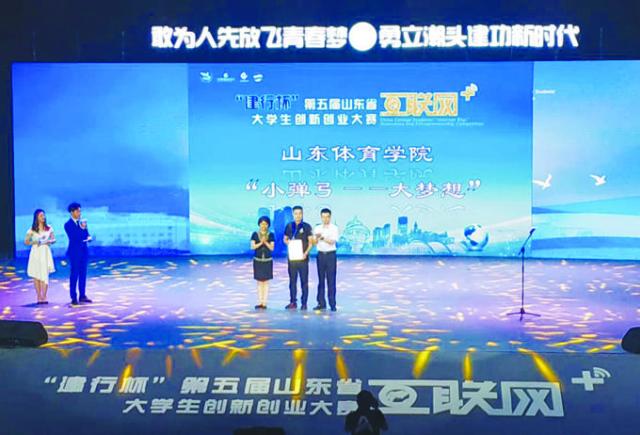 7月26日上午,第五届山东省“互联网+”大学生创新创业大赛在青岛落下帷幕。山东体育学院参赛的3个项目喜获1金1银1铜,并斩获大赛唯一的1个“最佳创意奖”。