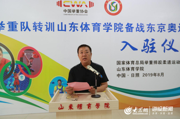 山东体育学院党委书记、中国举重协会副主席王毅出席仪式并致欢迎词;山东省体育局党组成员、副局长张柄臣出席仪式并讲话;奥运金牌教练员、国家举重队男队主教练于杰作转训动员发言;奥运冠军吕小军、石智勇代表队员作表态发言。