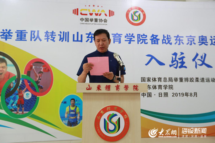 大众网教育·海报新闻讯(通讯员 阴越 贺亚平)8月1日,国家举重队一行32人抵达日照市。山东体育学院隆重举行“国家举重队转训山东体育学院备战东京奥运会”入驻仪式。这是国家举重队历史上首次转训一所大学,而且是距东京奥运会倒计时一周年的关键备战期。