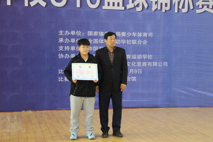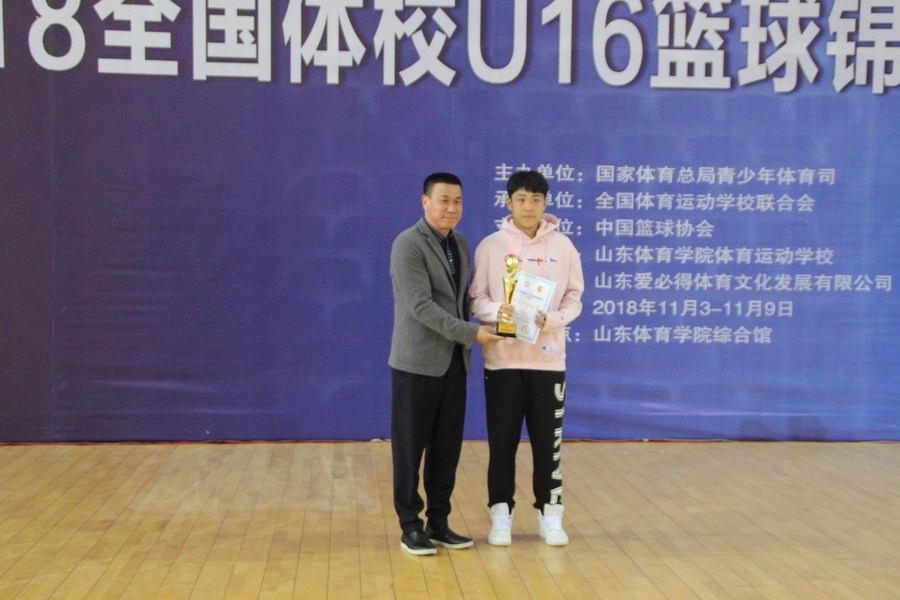 中国篮球协会青少部部长薛云飞,全国体育运动学校联合会副理事长、山东体育学院附属中学校长安慕雷,全国体育运动学校联合会竞赛部部长张秀云,山东省篮球管理中心主任魏淑波,山东体育学院竞训处副处长曲国洋出席颁奖仪式,并分别为前三名运动队、最有价值球员和体育道德风尚奖运动队颁发奖杯和证书。裁判长王芳在颁奖仪式上宣读了比赛成绩。