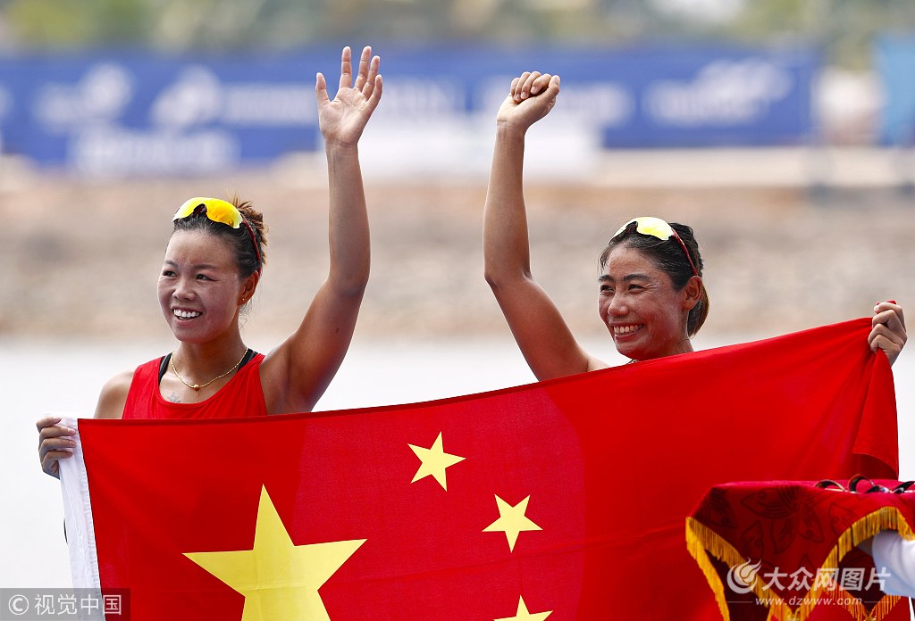江燕与队友荣获赛艇女子双人双桨金牌;