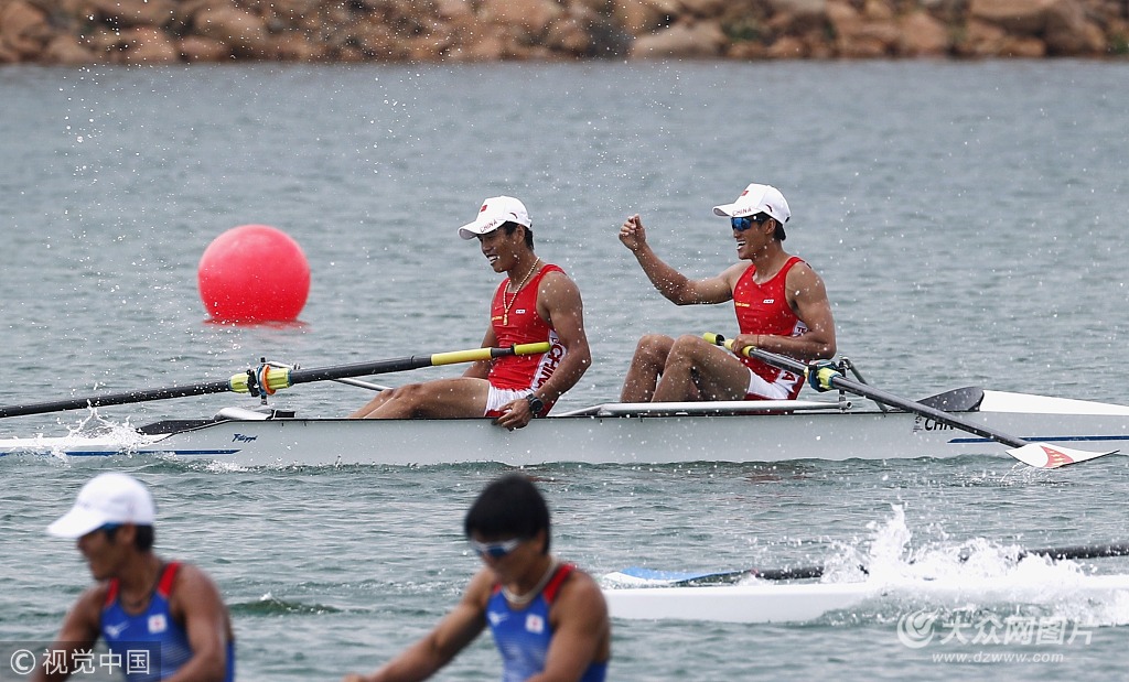 赵景滨与队友荣获赛艇男子双人单桨无舵手金牌;