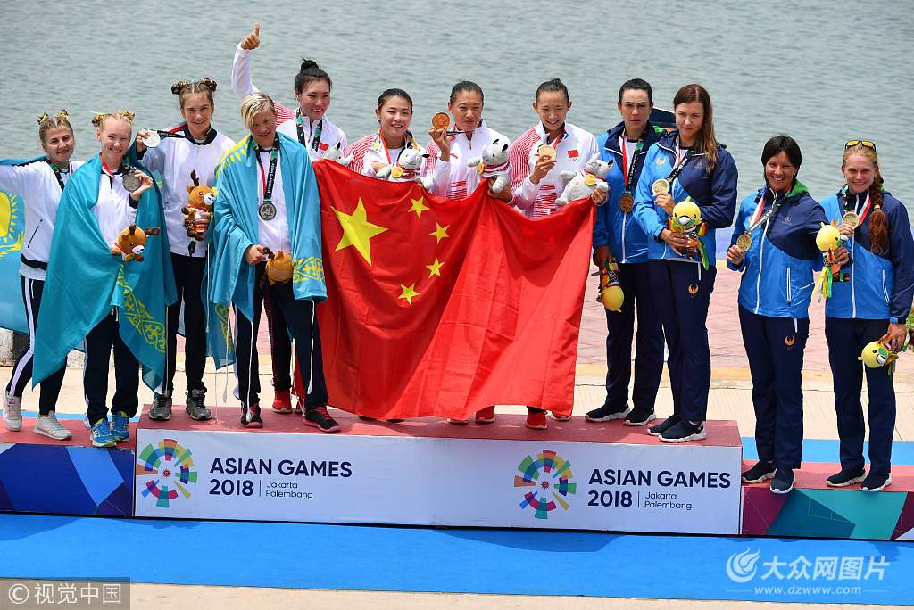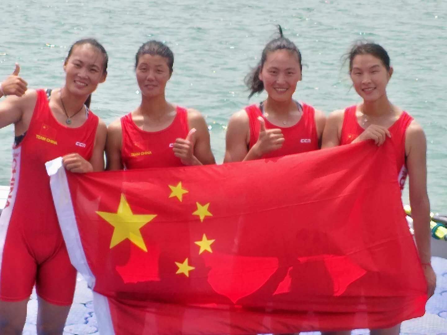 学子张敏、校友郭淋淋和队友荣获赛艇女子四人单桨金牌;
