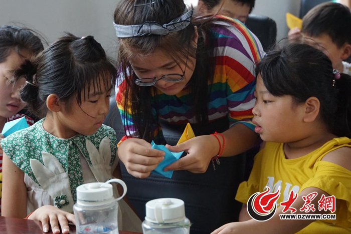 团队成员在教孩子们折纸