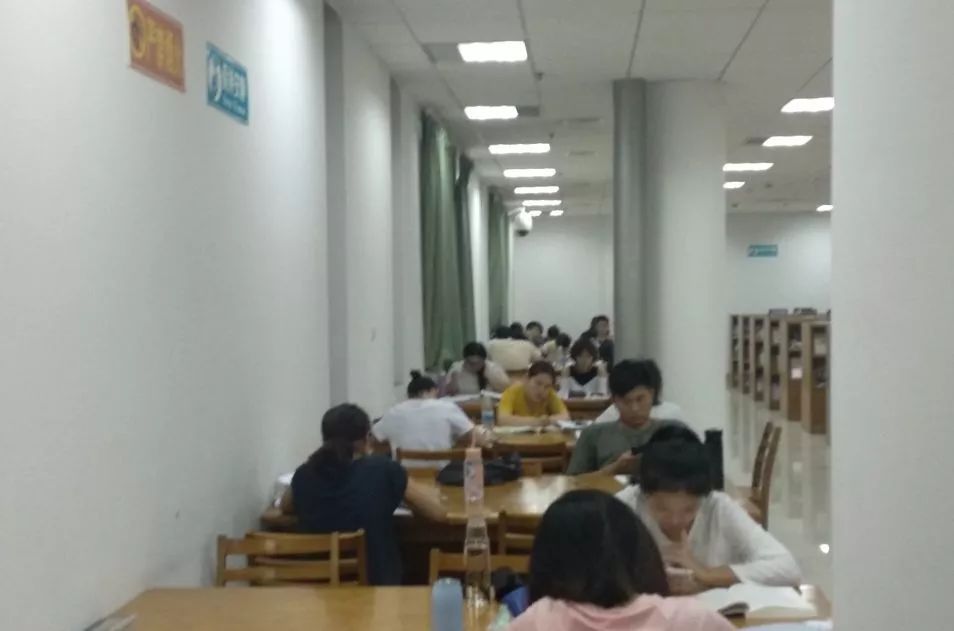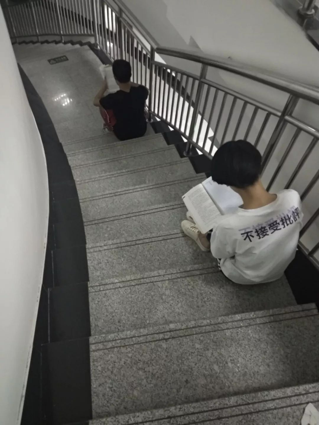 原来是在下晚自习后八点五十分时,一名大一学生想用图书馆闭馆前的最后40分钟再复习一下明天的考试科目。可是她走进馆里时便惊呆了,竟然看见有学长坐在楼梯上学习,在馆里竟然找不到一张空桌子。“本来以为再有40分钟就闭馆了,肯定有很多地方。”她说道。