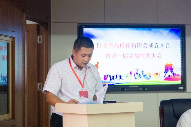 2018年9月12日下午,日照市高校体育协会成立大会暨第一届会员代表大会在山东体育学院日照校区培训楼报告厅隆重召开。中共日照市委高等学校工作委员会副书记杜树厚,山东体育学院国家足球学院国家篮球学院副院长兼党总支书记、日照校区管委会副主任连增威,日照市体育局党组成员、日照市体育总会副主席张永礼,日照广电影视集团党委副书记、总编辑牟敦波,曲阜师范大学体育教学部主任杨弢,济宁医学院学生处副处长丁国军,日照市民间组织管理局副局长丁明利,山东外国语职业学院副院长郑成刚等领导出席会议。曲阜师范大学体育教学部主任杨弢主持会议。