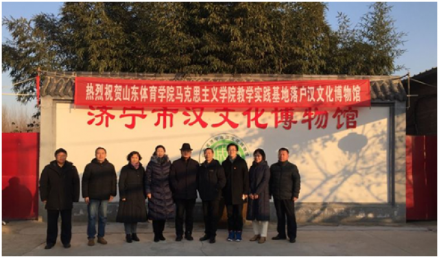 济宁是汉画像石四大主产区之一,素有“济宁汉画甲天下”之誉。刘蔚听李欣说任城区汉文化博物馆具有丰富的传统文化教育资源,于是马上决定在此建设一处汉文化实践教学基地。那天座谈会结束后,刘蔚、张兴华便与小队全体成员及三位工作组组长一起到二十里铺汉文化博物馆调研参观并举办了实践教学基地挂牌仪式。