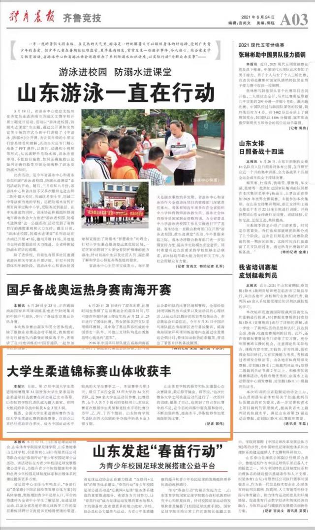 【体育晨报】大学生柔道锦标赛山体收获丰