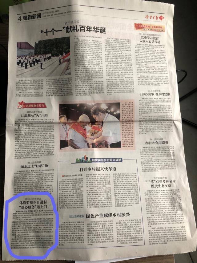 【济宁日报】体质监测车开进村 “爱心服务”送上门