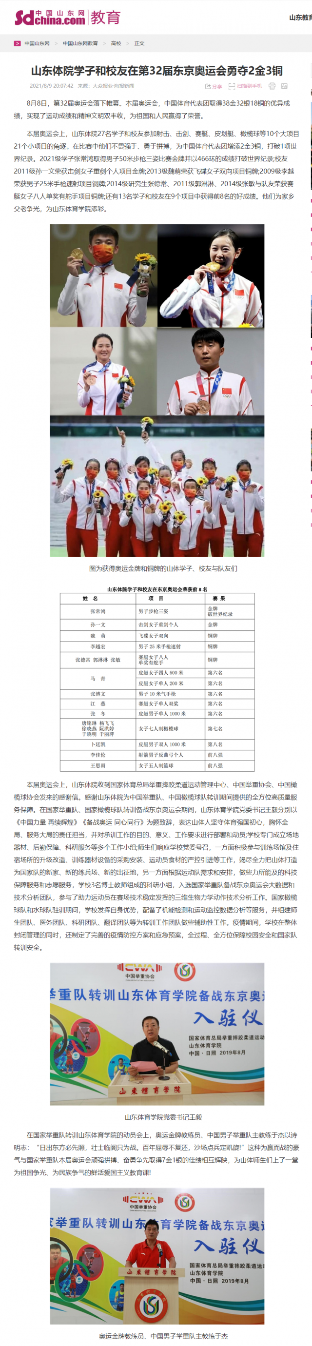 原文链接:山东体院学子和校友在第32届东京奥运会勇夺2金3铜_教育频道_中国山东网_中国山东网 (sdchina.com)