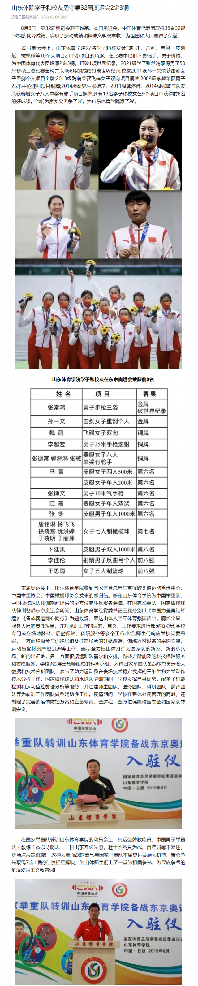 原文链接:山东体院学子和校友勇夺第32届奥运会2金3铜 (e23.cn)