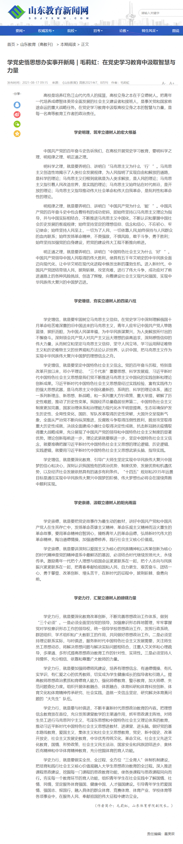 原文链接:学党史悟思想办实事开新局 | 毛莉虹:在党史学习教育中汲取智慧与力量_山东教育新闻网 (sdjyxww.com)