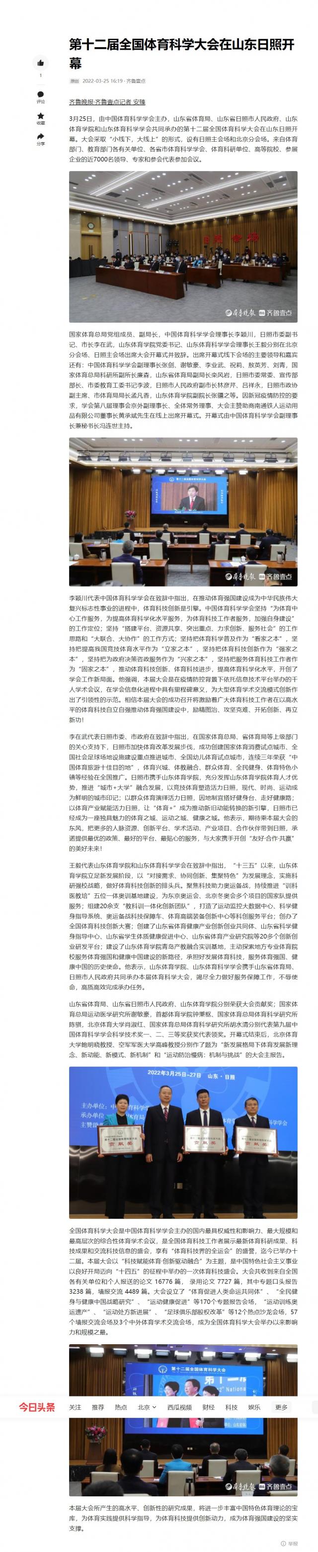 原文链接:第十二届全国体育科学大会在山东日照开幕-今日头条 (toutiao.com)