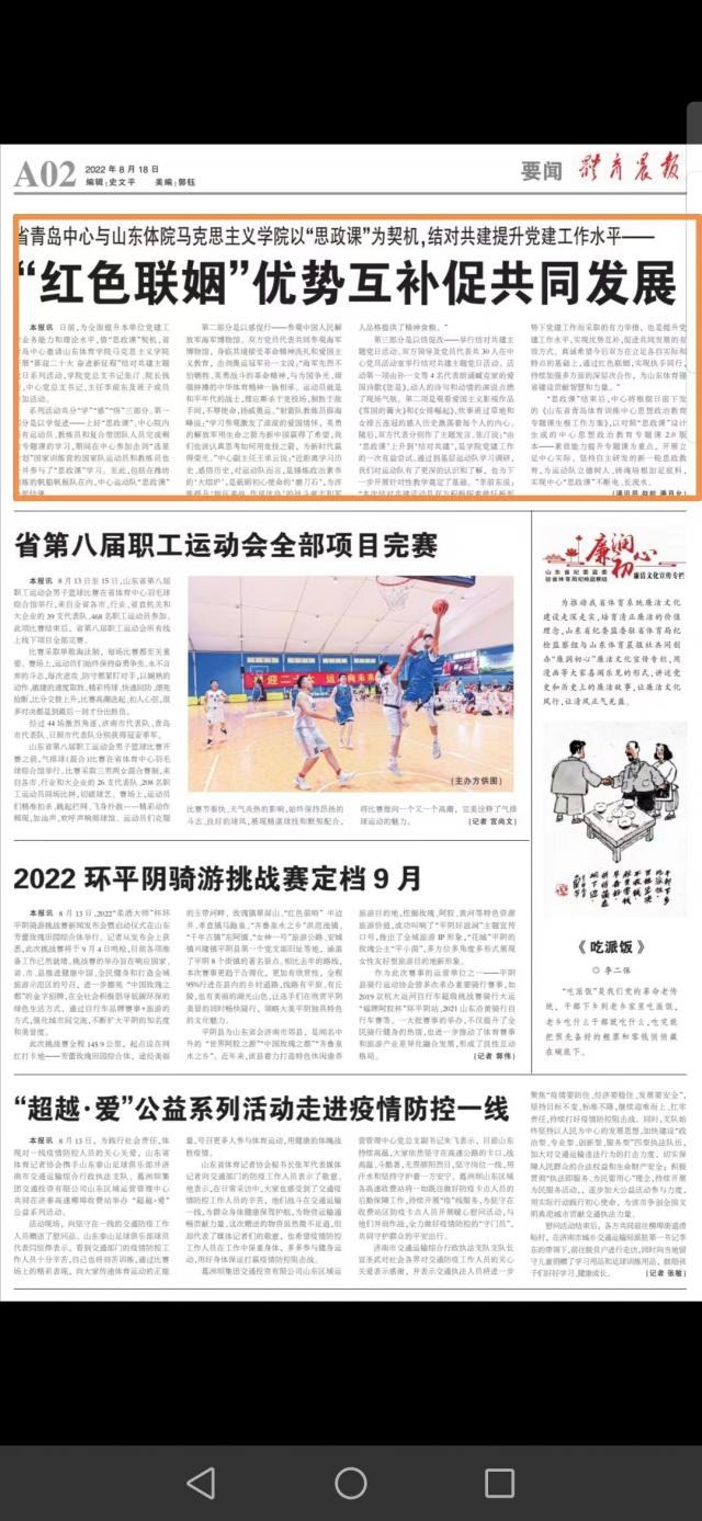 【体育晨报】山东省青岛中心与山东体院马克思主义学院以“思政课”为契机,结对共建提升党建工作水平