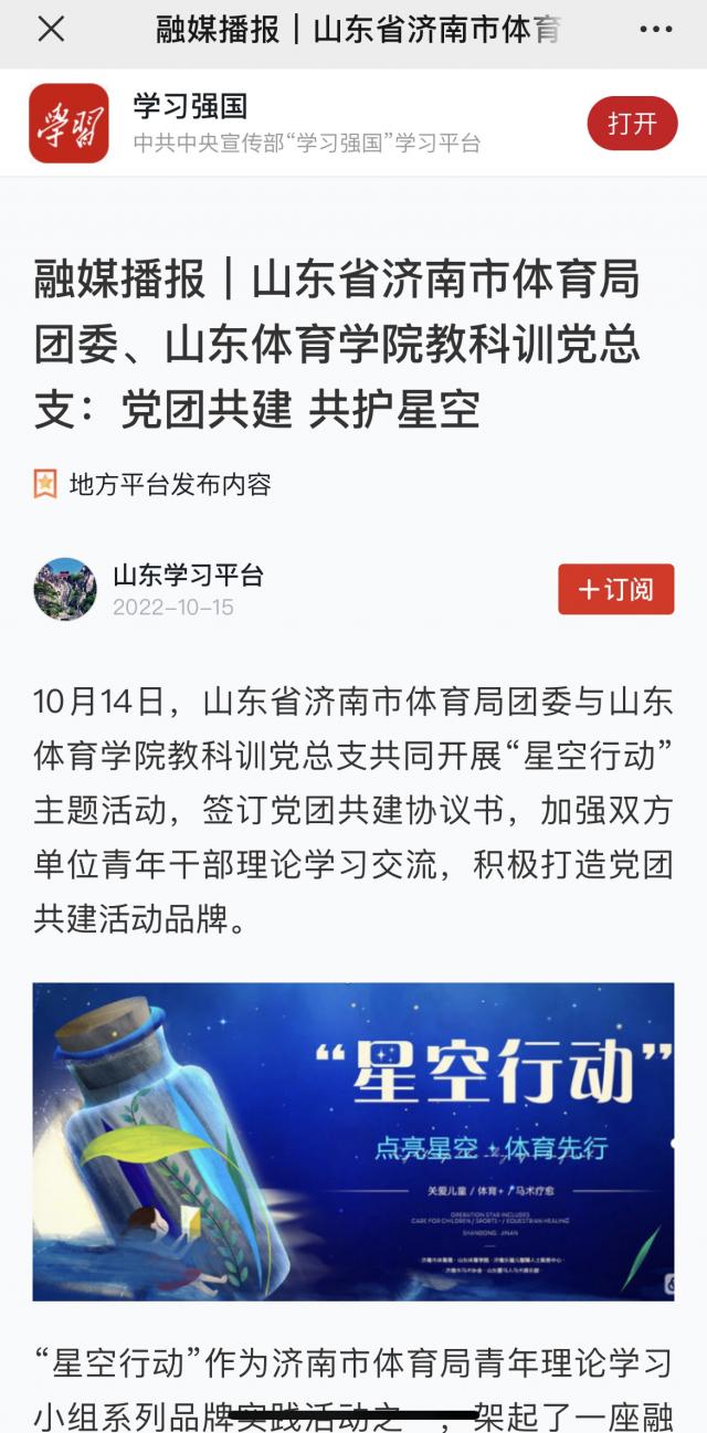 【学习强国】融媒播报|山东省济南市体育局团委、山东体育学院教科训党总支:党团共建 共护星空