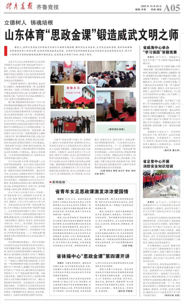 【体育晨报】立德树人铸魂培根 山东体育“思政金课”锻造威武文明之师