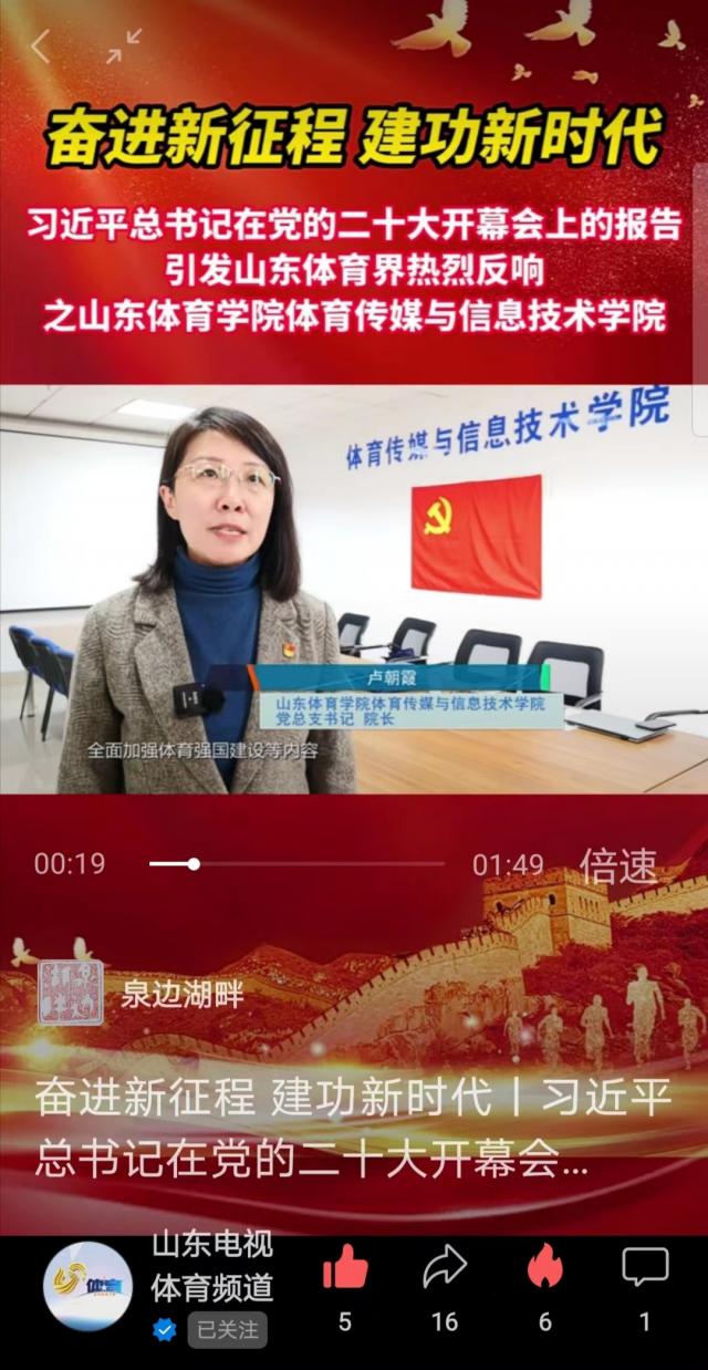 【山东电视体育频道】奋进新征程 建功新时代 习近平总书记在党的二十大开幕会上的报告 引发山东体育界热烈反响 之山东体育学院体育传媒与信息技术学院