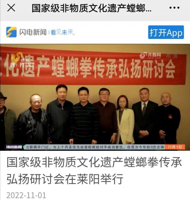【闪电新闻】国家级非物质文化遗产螳螂拳传承弘扬研讨会在莱阳举行