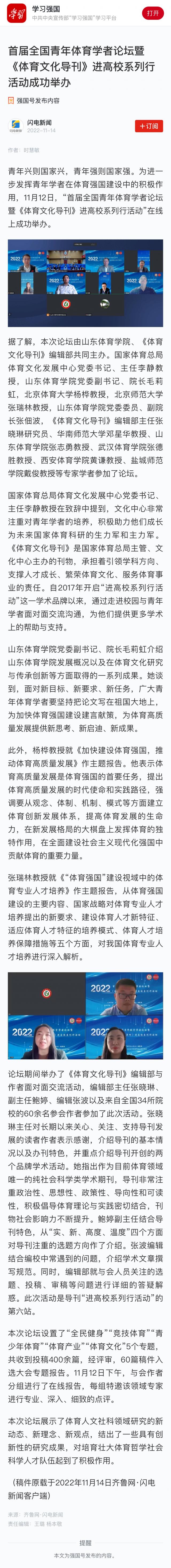 【学习强国】首届全国青年体育学者论坛暨《体育文化导刊》进高校系列行活动成功举办