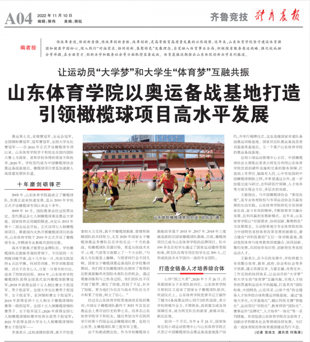 【体育晨报】让运动员“大学梦”和大学生“体育梦”互融共振丨山东体育学院以奥运备战基地打造引领橄榄球项目高水平发展