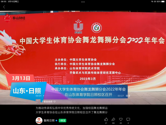 【鲁网日照】中国大学生体育协会舞龙舞狮分会222年年会在山体召开