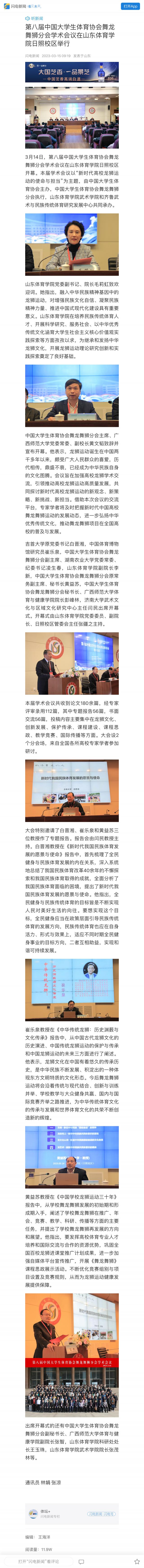 【闪电新闻】第八届中国大学生体育协会舞龙舞狮分会学术会议在山东体育学院日照校区举行
