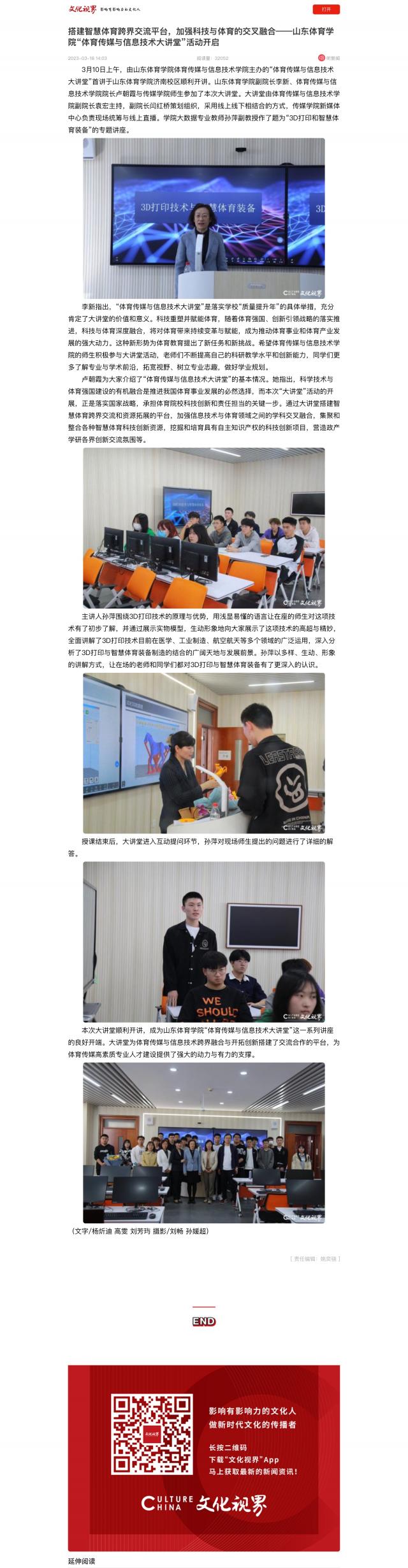 【文化视界】搭建智慧体育跨界交流平台,加强科技与体育的交叉融合——山东体育学院“体育传媒与信息技术大讲堂”活动开启