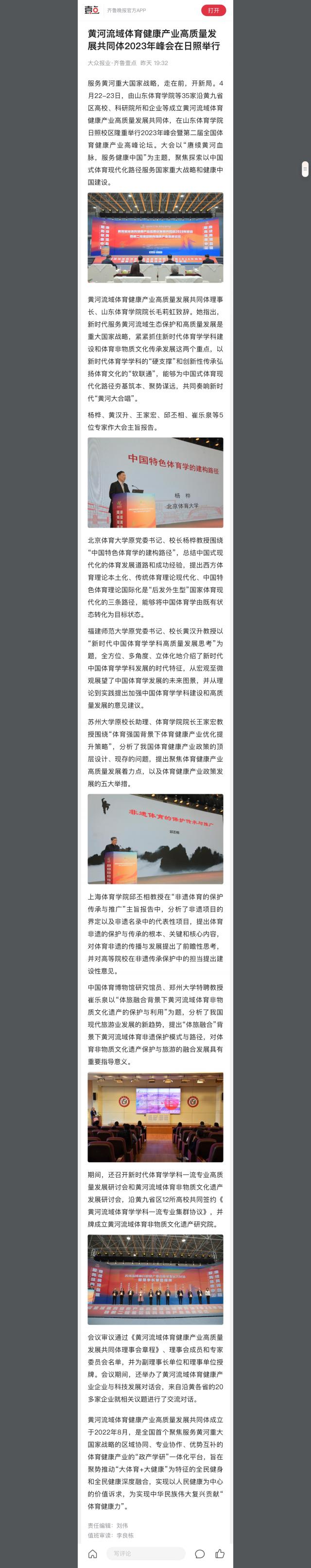 【齐鲁晚报 齐鲁壹点】黄河流域体育健康产业高质量发展共同体2023年峰会在日照举行