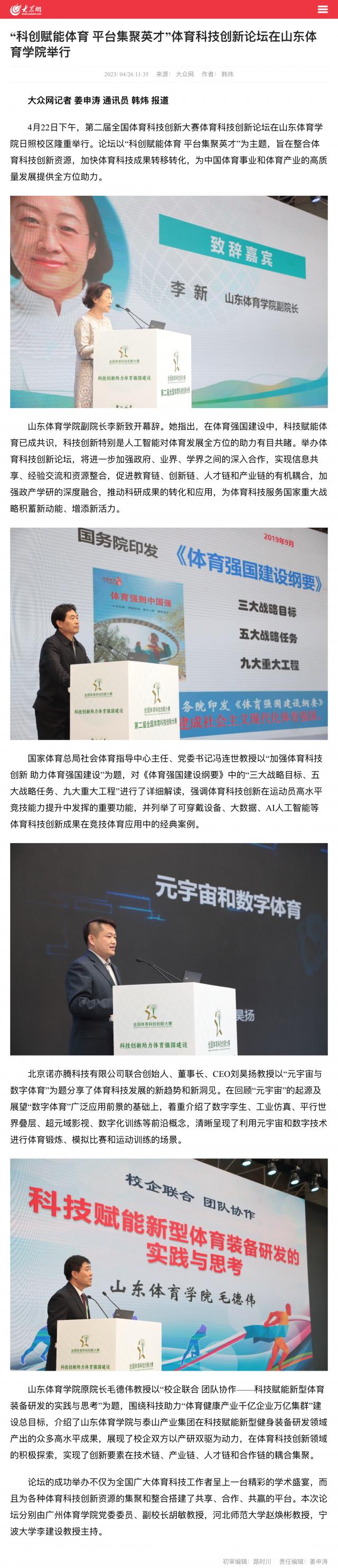 【大众网】“科创赋能体育 平台集聚英才”体育科技创新论坛在山东体育学院举行